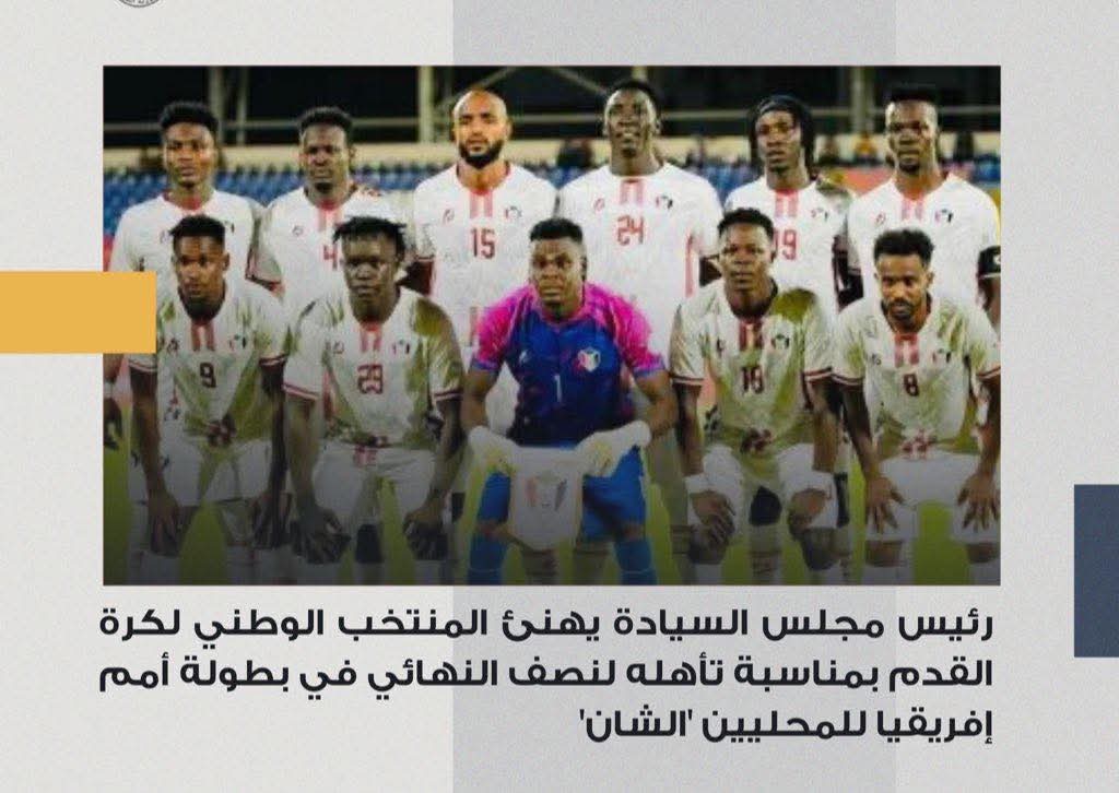 هنأ رئيس مجلس السيادة الإنتقالي، الفريق أول ركن عبدالفتاح البرهان، المنتخب الوطني لكرة القدم ، بمناسبة تأهله لنصف نهائي بطولة أمم إفريقيا للمحليين “الشان”