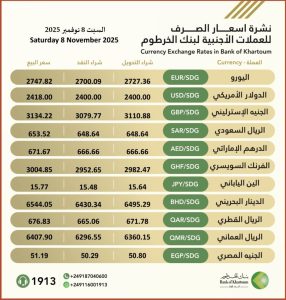 نشرة اسعار الصرف للعملات الاجنبية في بنك الخرطوم