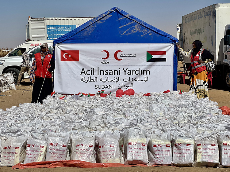 وقال رئيس فريق الهلال الأحمر التركي في السودان فاروق آقصوي، بحسب وكالة الأناضول إن المنظمة التركية وزعت 500 طرد غذائي و655 طرد أغذية للرضع على مخيم العفاد للاجئين في الدبة.