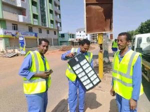 شرع بنك الخرطوم في إنارة حي المزاد ببحري بكشافات تعمل بالطاقة الشمسية، دعمًا لجهود تهيئة البيئة لعودة المواطنين، تحت رعاية والي ولاية الخرطوم أحمد عثمان حمزة.