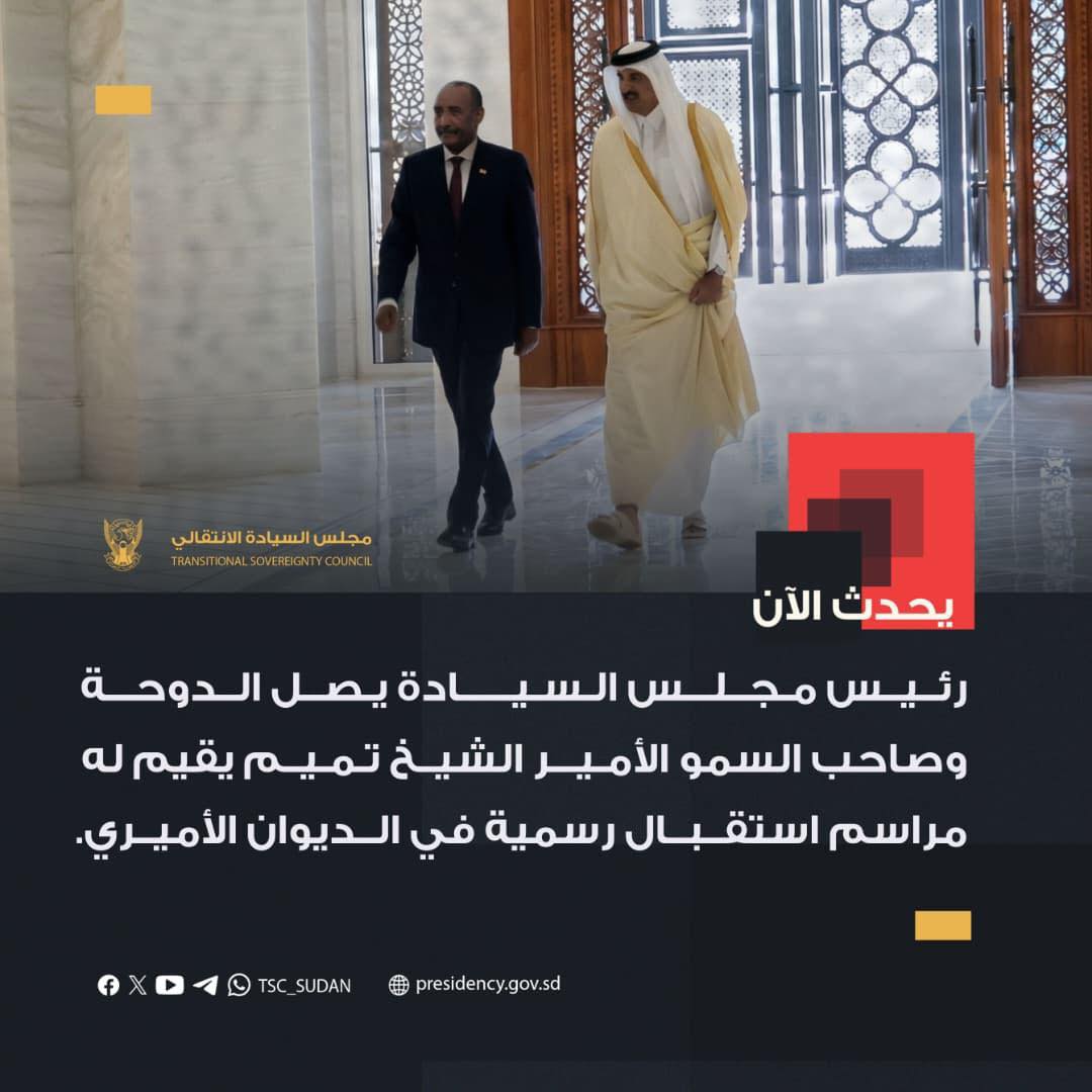 قال إعلام مجلس السيادة، إنّ رئـيـس المجلس وصل الدوحة صباح اليوم الثلاثاء.