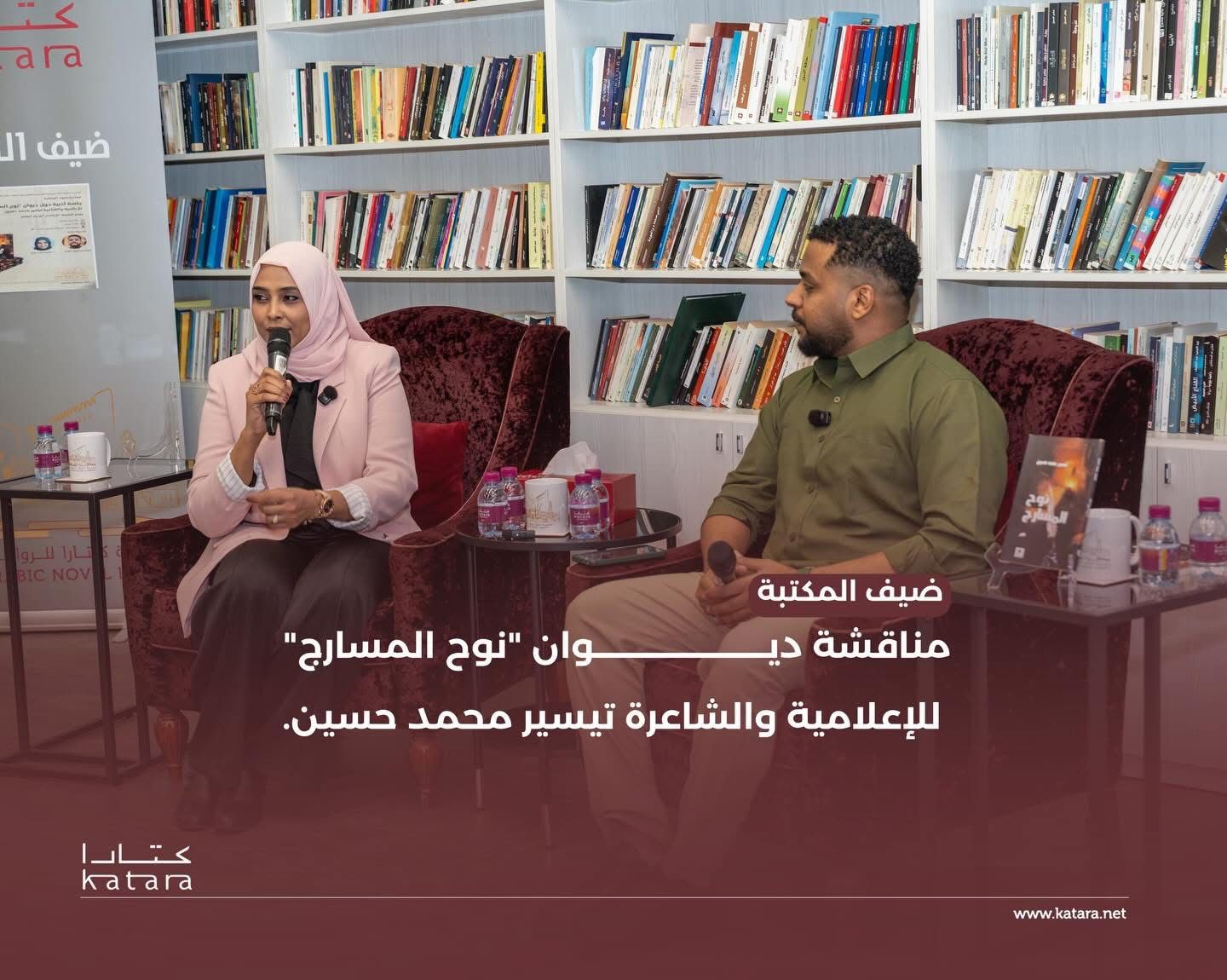 امتدحت الإعلامية والشاعرة تيسير محمد حسين، الحضور الكبير لأمسية نوح المسارج التي أقيمت في مكتبة كتارا للرواية العربية.
